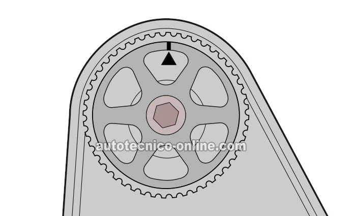 Verificando Las Marcas De Tiempo En El Engrane Del Árbol De Levas Y En La Tapa Trasera De La Correa De Distribución