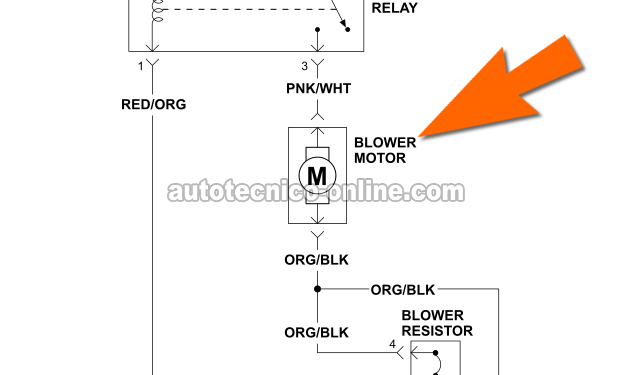 Como probablemente ya has de saber, el motor del soplador tiene un conector eléctrico de 2 cables. Un cable es rosa con rayita blanca (PNK/WHT) y el otro es un cable naranja con rayita negra (ORG/BLK).