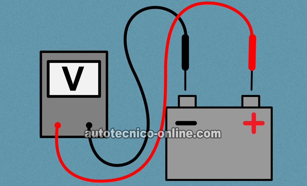 Con la sonda roja del multímetro, sondea la terminal positiva (+) de la batería.