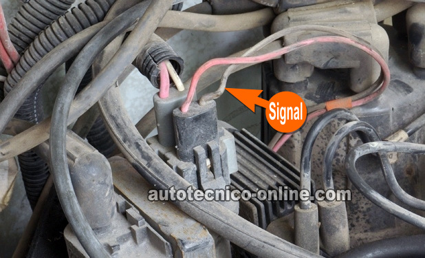 Si esta señal está presente, entonces podemos concluir que el módulo de encendido está funcionando correctamente. Pero si la señal no está presente, entonces el siguiente paso es verificar que el módulo esté recibiendo la señal de la posición del cigüeñal de la bobina captadora (pick-up coil).