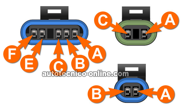Si le das un vistazo a cada conector del cableado que conecta al módulo de encendido, notarás que tienen grabados en relieve letras. Estas letras son usadas para identificar los circuitos usando un manual de reparación. Entonces, para facilitar las explicaciones de las pruebas que le harás a ciertos circuitos, he usado estas mismas letras para describir la función de cada uno de ellos abajo
