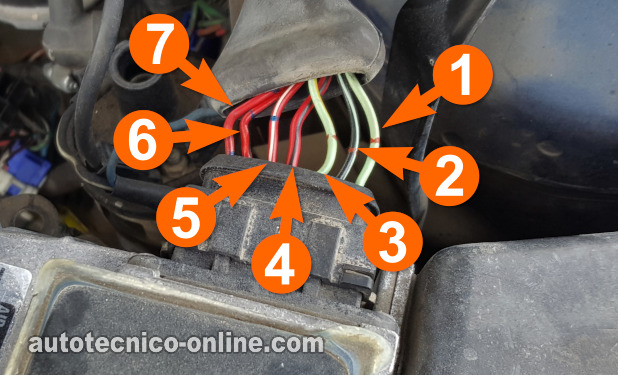 Notarás que en la foto coloqué los números del 1 al 7 sobre el conector del sensor VAF. Cada número representa un circuito. Abajo podrás leer la descripción de cada uno de ellos .