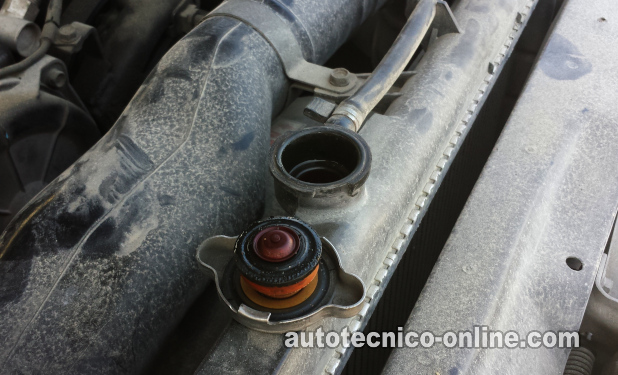 1.) El agua o el líquido refrigerante de motor dentro del radiador se disparará hacia afuera del radiador ahora abierto.