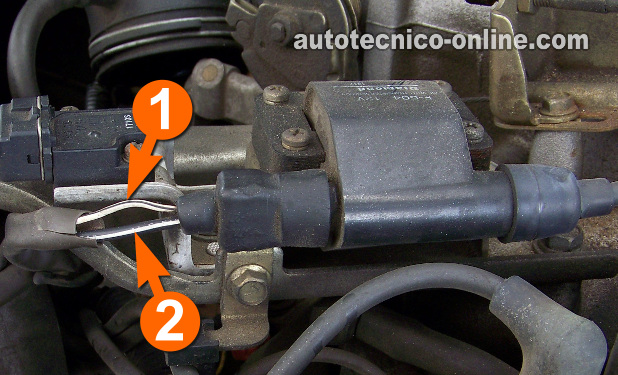- El conjunto del sensor de la posición del cigüeñal y del sensor de la posición del árbol de levas está ubicado en el distribuidor.