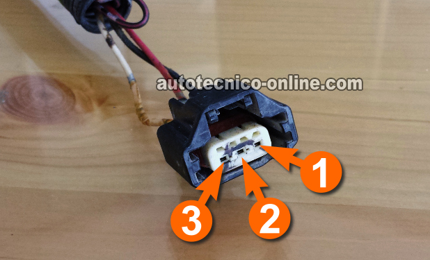 Uno de los tres cables suministra 12 Voltios de batería al sensor CKP. Otro cable le alimenta Tierra de chasis. Y un cable lleva la señal CKP a la computadora de la inyección electrónica.
